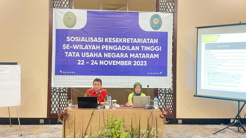 Sosialisasi kesekretariatan bagi ASN se Wilayah PTTUN Mataram, Narasumber dari KPPN Mataram dan Biro Pengadaan Barang dan Jasa Setda Provinsi NTB